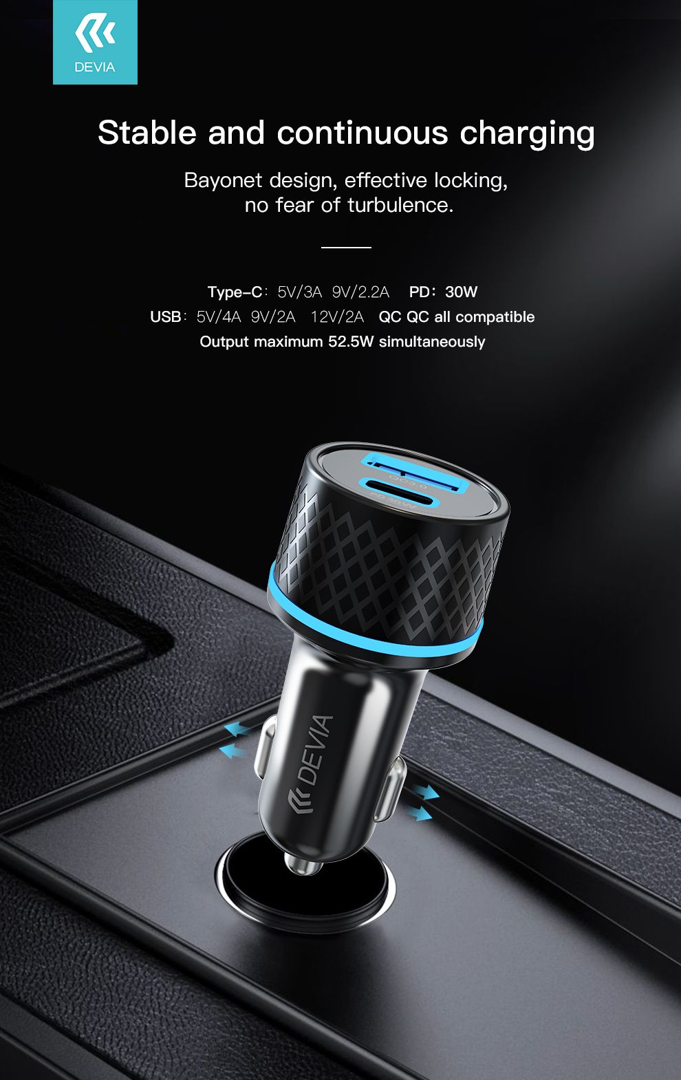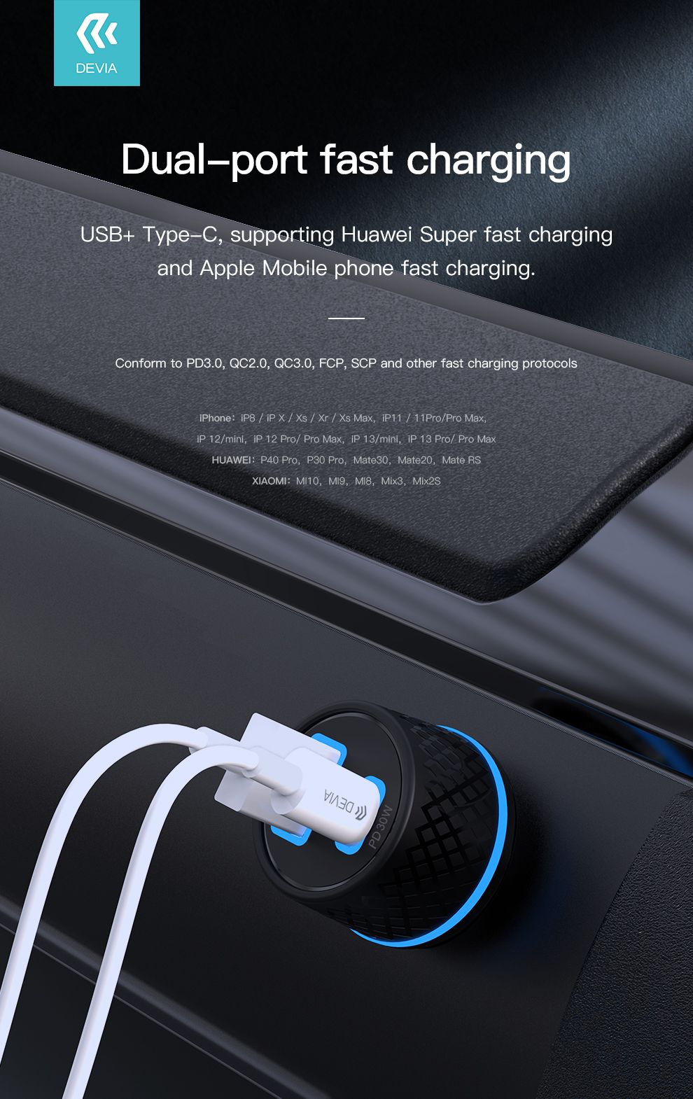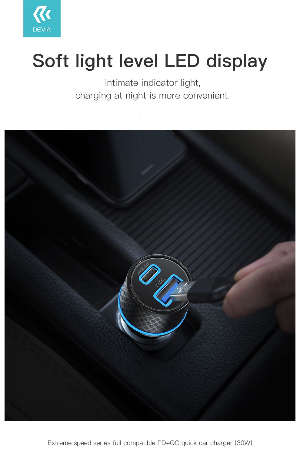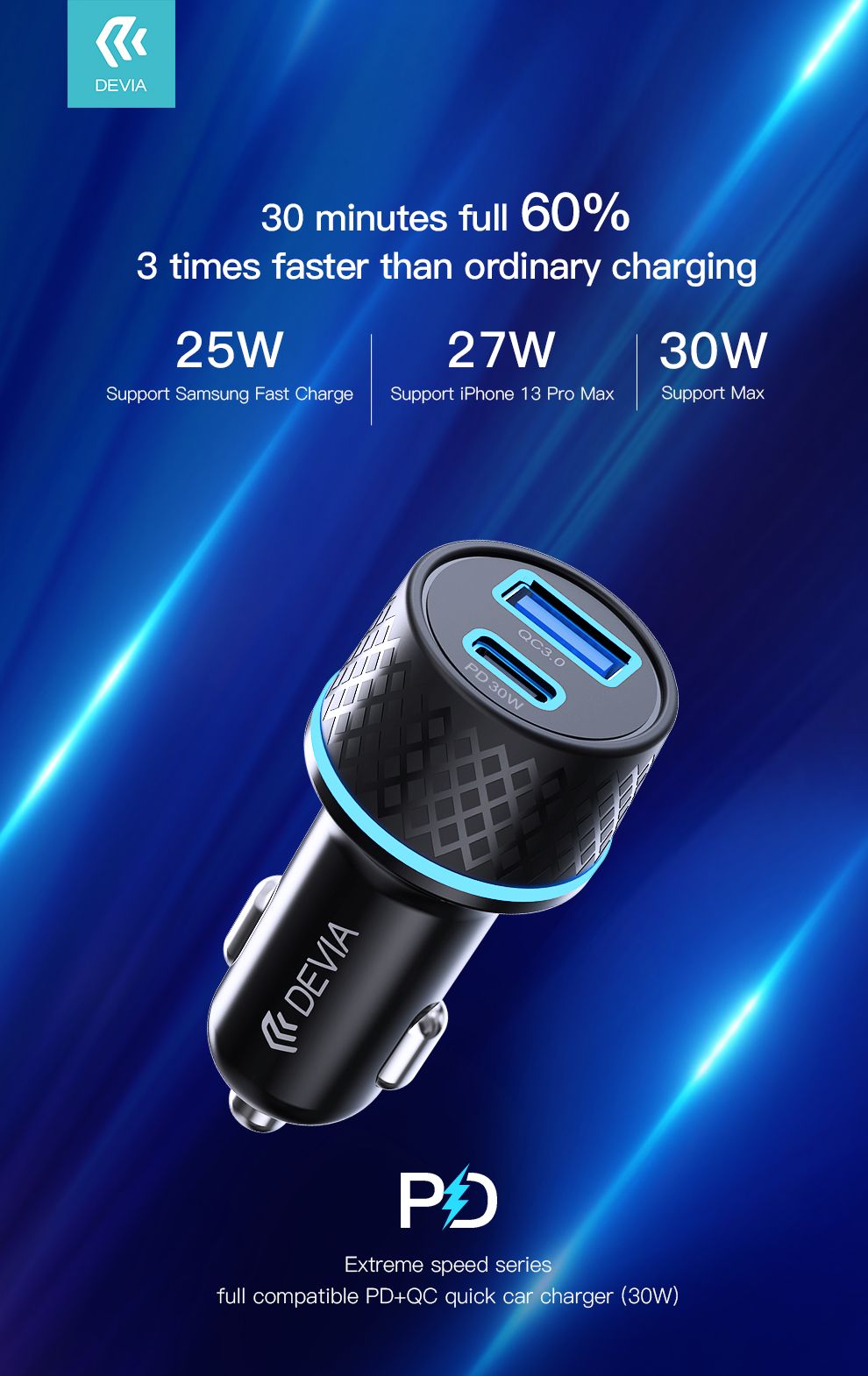 Extreme speed series PD30W+QC full compatible PD car charger