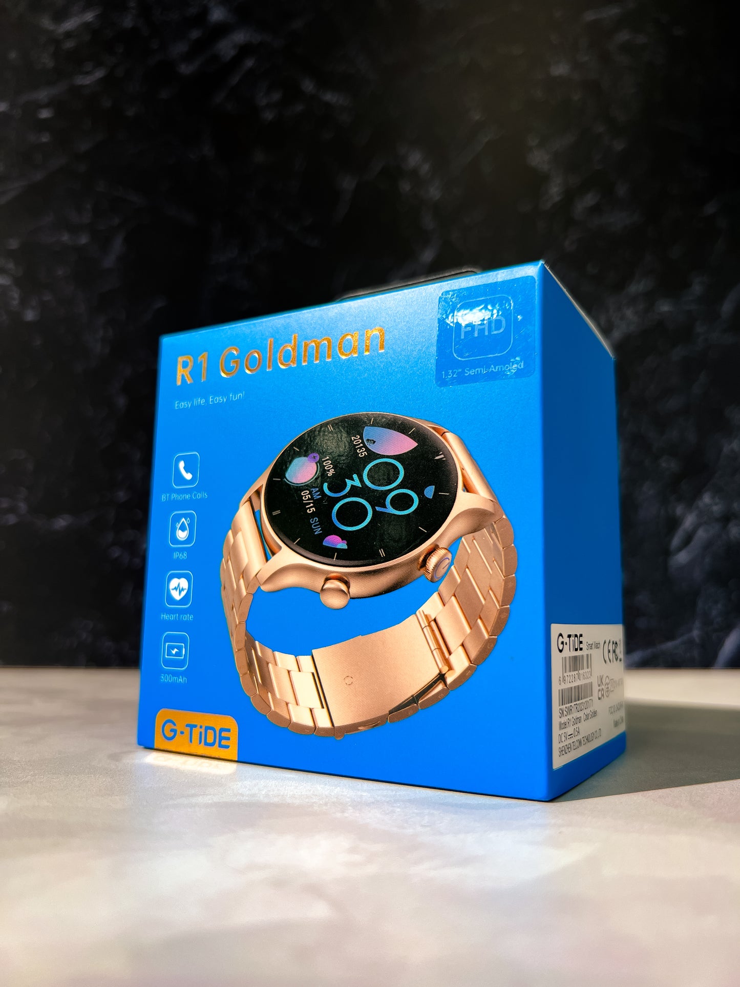 Sin duda, el Smartwatch R1 Goldman1 cuenta con una resistencia al agua de grado IP68, lo que lo hace resistente a salpicaduras, lluvia y puede sumergirse brevemente en agua.
