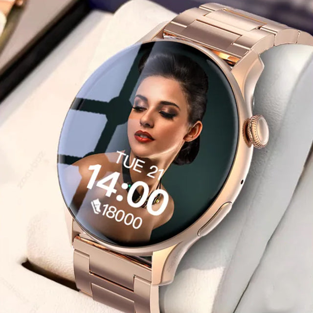 el Smartwatch R1 Goldman1 se sincroniza con smartphones vía Bluetooth, permitiendo usar aplicaciones de salud y notificaciones, brindando una experiencia completa y versátil.